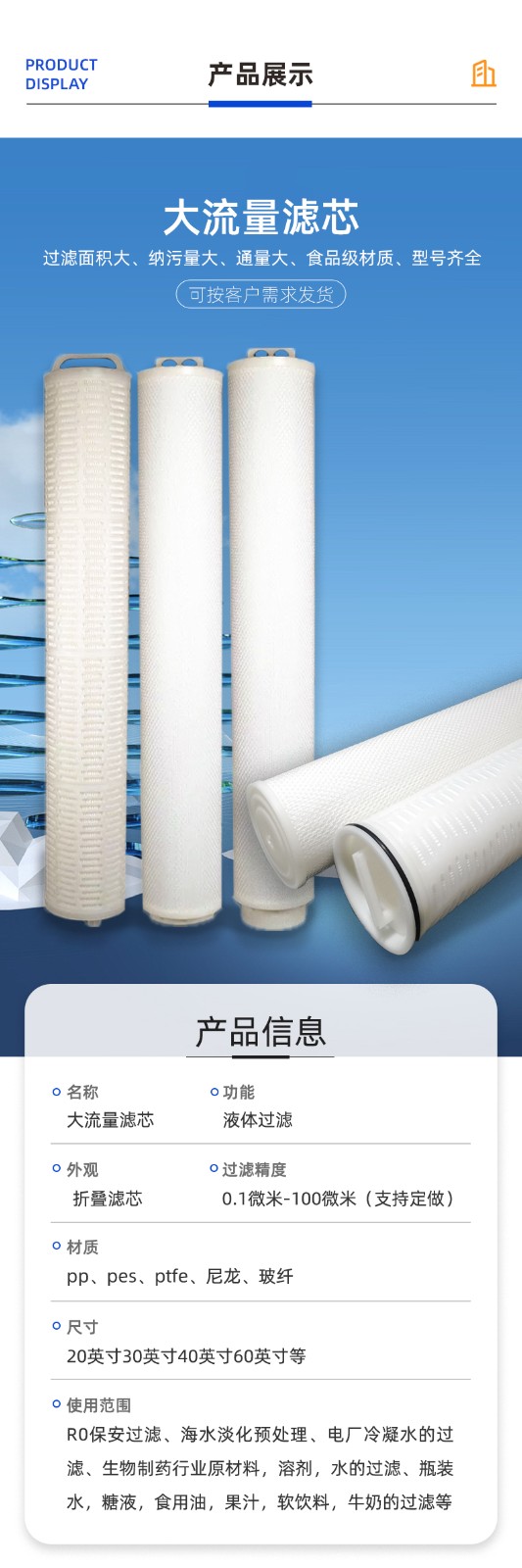 產品描述:大流量濾芯相比其他的濾芯有以下優勢:處理能力更強、過濾面積更大、過濾速度更快、設計更耐用、維護頻率更低、應用范圍更廣、使用成本更低。...